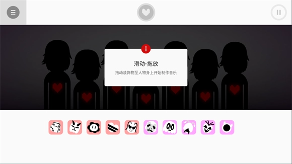 3、游戏玩法其实很简单,只需要拖动下面的装饰物到人物身上就可以开始制作音乐;