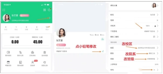 因我校设置了3个跑步校区,每个跑步校区有各自的有效跑步时间,故同学们在跑步开始前需要在我的—个人资料—点击小铅笔 进行更改,改选自己要跑步的校区位置,或在跑步模式下面选择定位的跑步区域。