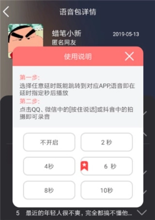 4、点击延时播放按钮(比如4秒)推荐6秒,自动进入微信后,在聊天窗口,语音包播放的同时,按住发送语音按钮