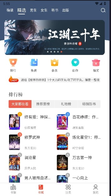 3、书城里面包含了海量的图书,也可以轻松搜索热门小说。