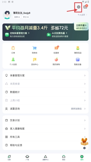 1、打开体重管理类应用,点击底部的“我的”选项,进入个人中心页面。