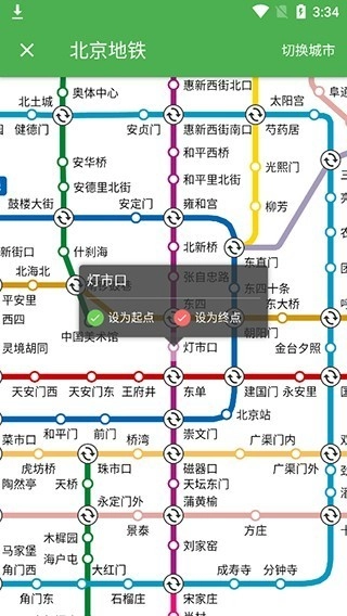 3、点击下方的地铁图,可以看到你所在城市所有的地铁,支持设置起点、终点