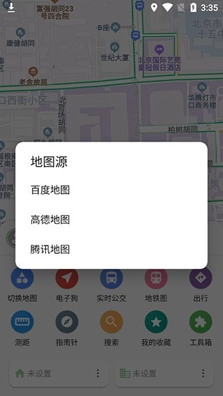 4、软件包含百度地图、高德地图、腾讯地图四大数据源,返回主界面,点击切换地图