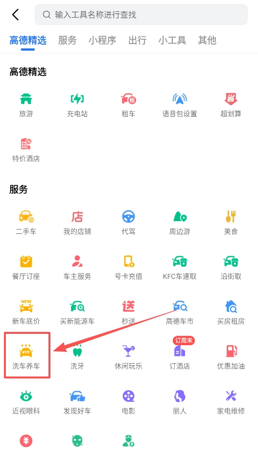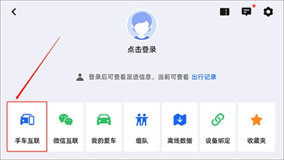 1、首先打开高德地图软件,进入到首页中后我们点击【手车互联】;