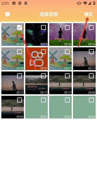 3、在选择视频界面【选择要旋转的视频】并点击【确定】,进入视频旋转界面。