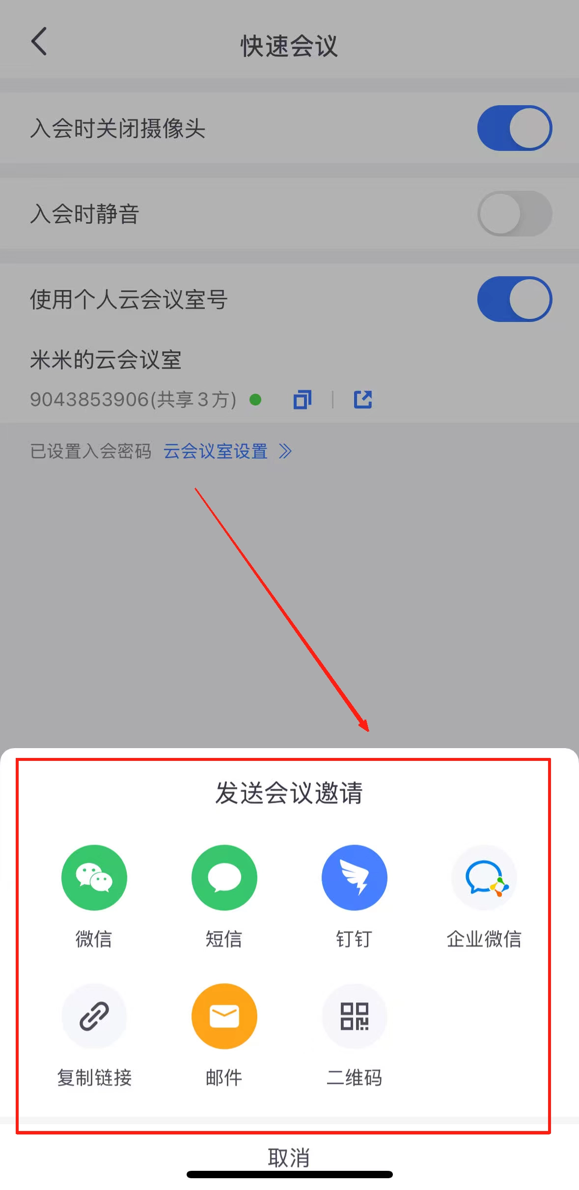 3、选择通讯录成员,通过短信或邮件发送邀请链接。
