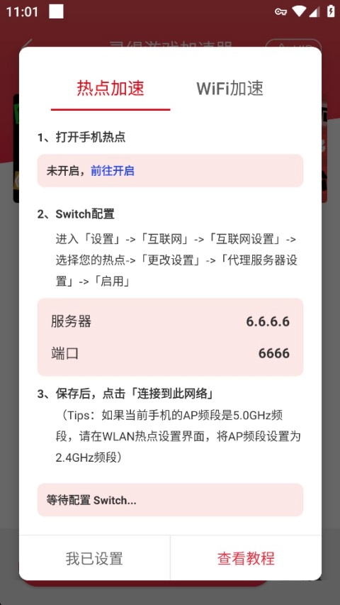 3、之后可以选择热点加速或者wifi加速,两种都有教程方案。