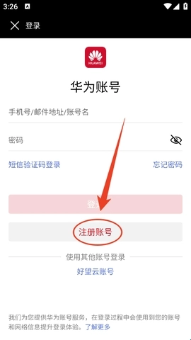 4、然后在登录页点击“注册账号”。