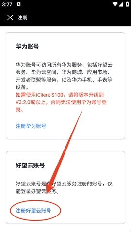 5、这里我们要选择“注册好望云账号”,不要选错了。