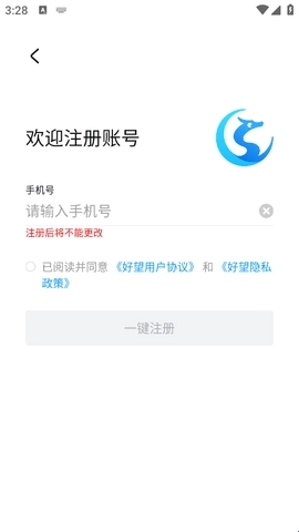 6、接着我们就能用手机号一键完成注册了,在此提醒:注册成功后手机号将无法修改,因此请大家谨慎操作,务必确认好手机号再进行注册。
