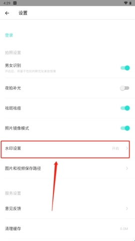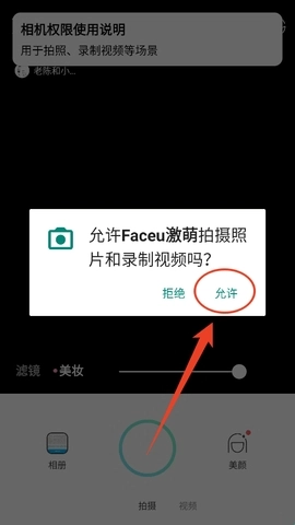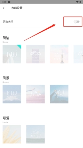 5、点击图中所示位置关闭即可,如此一来拍摄的照片就不会带有Faceu激萌的水印了。