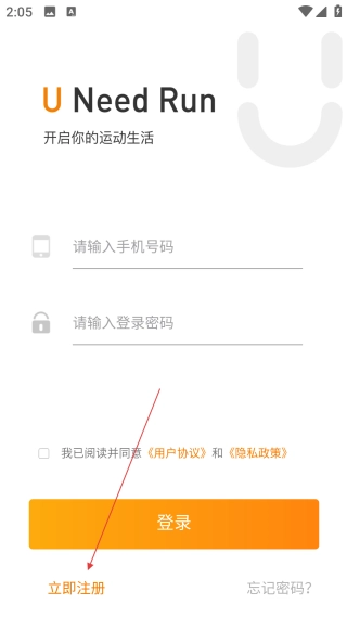 1、在登录界面,点击【立即注册】按钮,跳转至应用的注册信息填写界面。