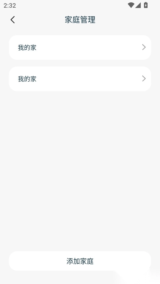 5.然后进入“家庭管理”菜单界面,找到底部“添加家庭”按钮进入下一步