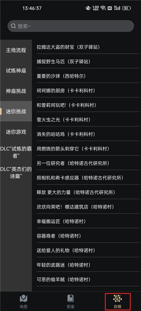 5、在“攻略”页面中即可查看主线任务攻略及各种挑战的详细攻略。