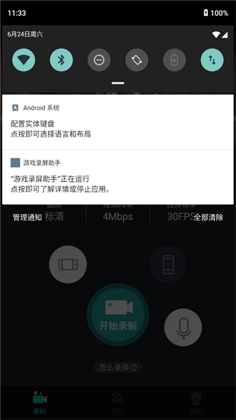 2、点击[开始录制] 按钮,获取[投射屏幕]权限后即可开始录屏