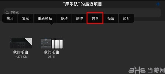 2、挑选你想要导出的音乐,长按该音乐不松开,此时会弹出一排操作栏,从中选择“共享”选项,具体操作可参考下图: