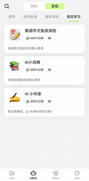 TalkAI练口语是由深圳市惊叹科技有限公司开发的智能学习平台,专注于提升用户的口语能力。借助先进的AI技术,用户可以随时与虚拟助手自由对话,同步练习听力和口语;无论是零基础的初学者,还是有一定语言基础的学习者,都能在这里找到适配的学习资源。平台内设有多语种、多难度的练习内容,还能提供实时反馈,帮助纠正发音和语调问题。其特色的AI视频通话功能,能让用户沉浸式体验模拟对话场景,逐步增强表达自信。无压力的学习环境让语言交流更轻松,让语言学习过程变得愉悦且高效。若你希望提升外语水平,将日常练习转化为习惯,TalkAI会是一个理想的选择。