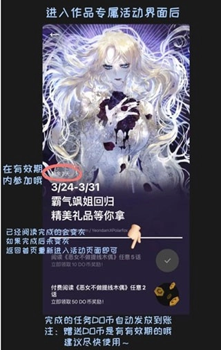 3、在作品专属活动页面,会展示活动的时间范围,用户需在有效期内参与活动,完成任务后DO币将自动发放至账户。