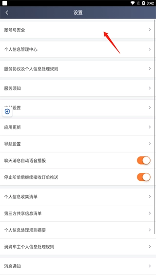 3、在设置中选择账号与安全;