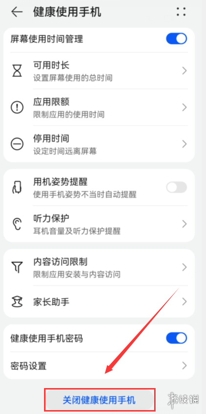 2、在【健康使用手机】中点击【关闭健康使用手机】即可。
