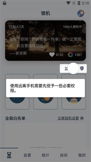 使用远离手机功能前,需要先授予一些必要的权限。