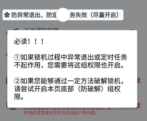 ①如果锁机过程中异常退出或定时任务不起作用,您需要将这组权限也开启。