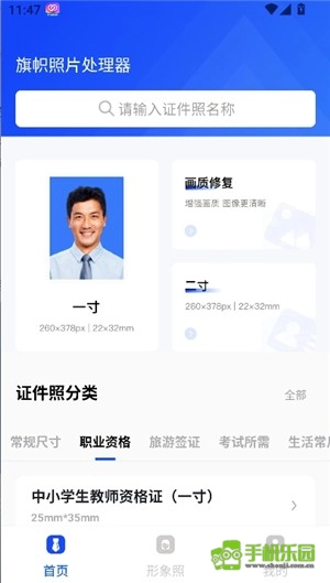 2、平台为用户提供职业资格、常规尺寸、旅游签证、考试所需等十几种类型的上百种证件照模板。