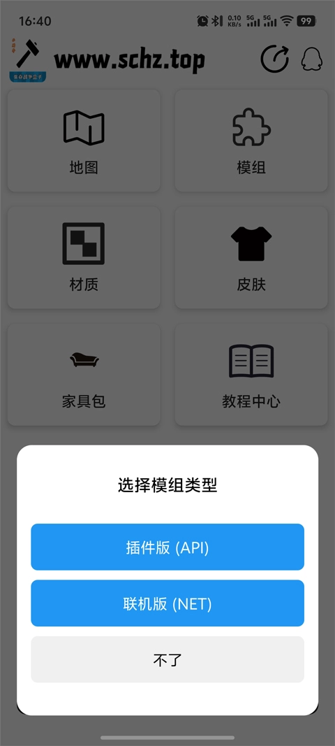 2、接着选择模组类型,支持插件版(API)和联机版(NET);