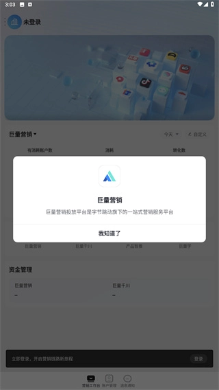 1、首先进入界面后,就能开展巨量营销、巨量千川、产品智推、巨量学等相关操作;