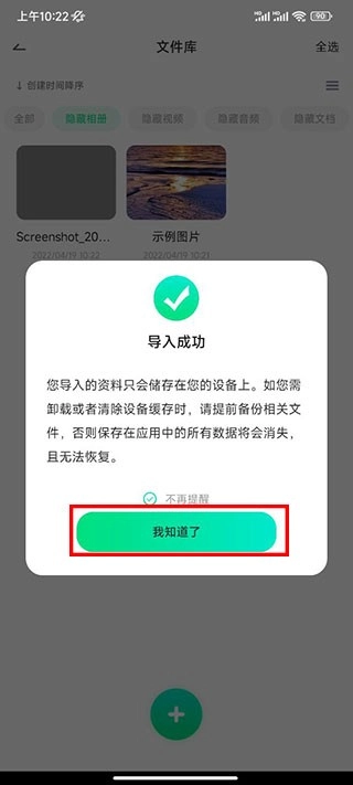 5、选择完图片后,显示导入成功点击【我知道了】即可。