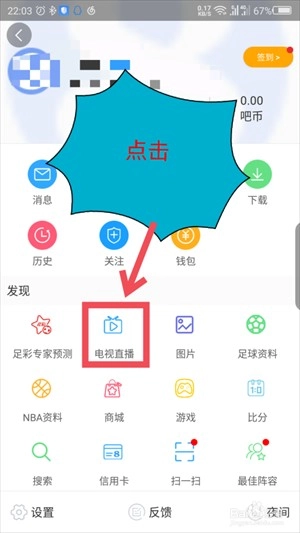 点击头像打开一个新的页面,在发现功能里面,能看到第二个选项就是电视直播选项,点击一下电视直播。如图所示