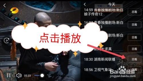在打开的电视直播界面,点击右下角的回看,可以观看已经放过的节目。如图所示