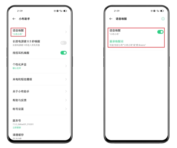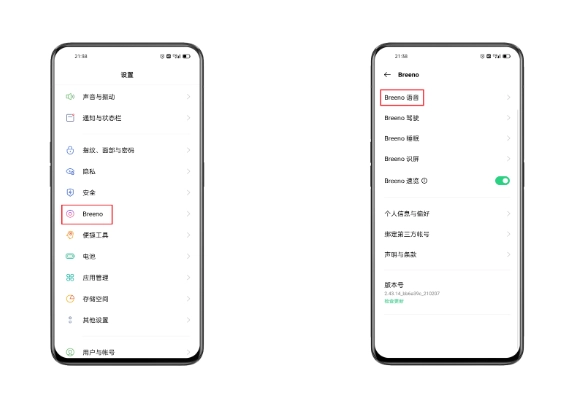 ColorOS 6-11.3版本:「 设置 > Breeno > Breeno语音」
