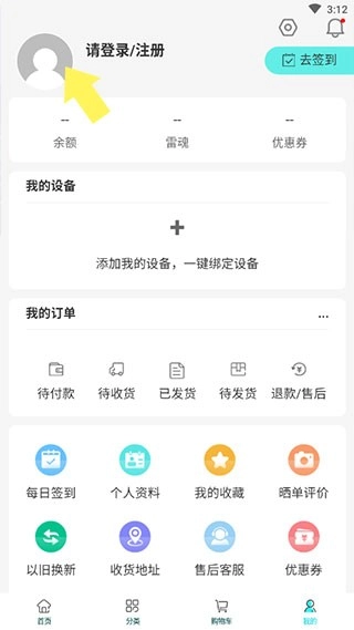 2、之后点击上方登录注册按钮,登录我们的雷神账号