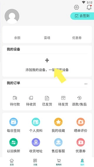3、登录之后点击“添加我的设备,一键绑定设备”并按照操作步骤提示进行完成设备绑定操作