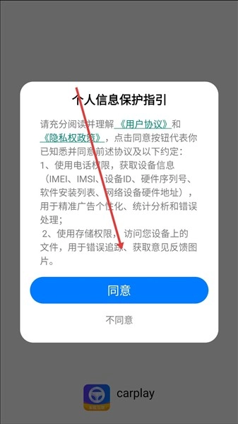 安装完成并进入应用时,需要在用户协议与隐私政策界面点击同意,接受相关条款后方可进入应用。