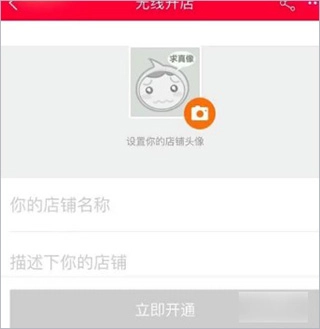 3、点进页面以后里面会有提示叫我们设置头像,店铺名,还有描述你的店铺信息灯等,点击立即开通;