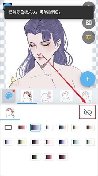 2、找到需要统一换色的部位,把它们与这个色板关联起来。